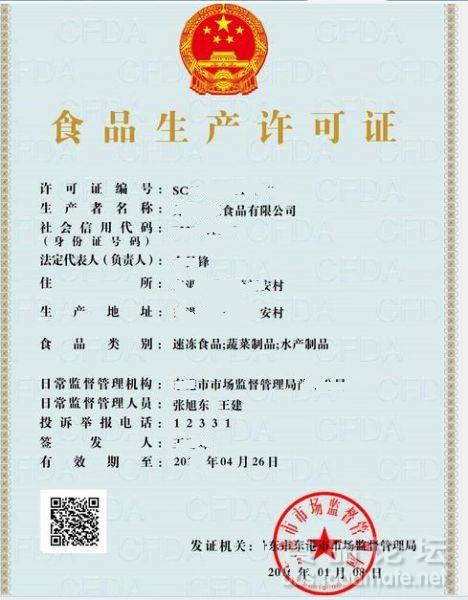 2016年新版食品生產許可證